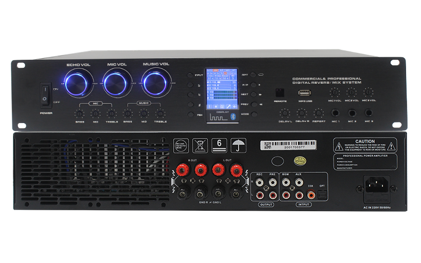 卡包功放 KA220U (2x100w蓝牙) 产品特点: 国际名厂音频输出管,功率强劲,低漏磁变压器供电,采用专业数码混响IC,话筒特设立体声效果,运用最新卡拉OK线路,采用先进专业MP3播放技术,USB接口,SD卡接口,两路话筒接入口,两路线路接入口,线路输出孔,录音输出口,混响功能,优良的内部电